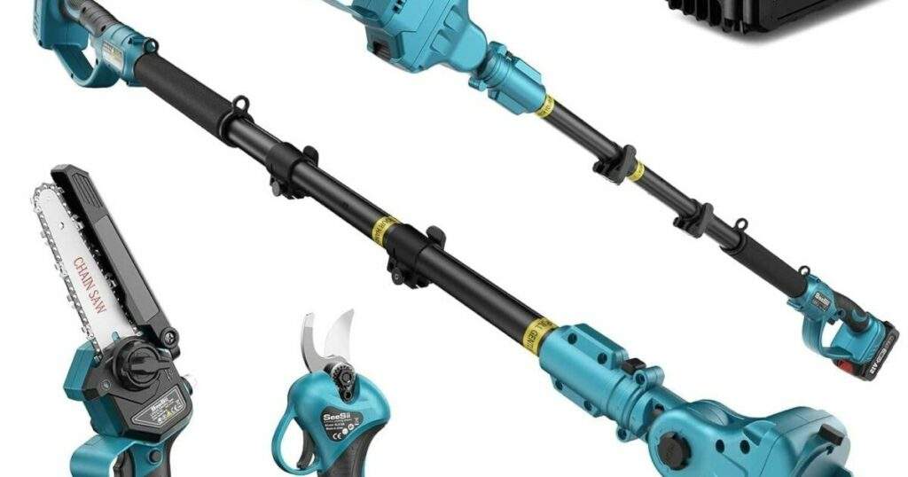 Als erfahrener Gärtner und Heimwerker habe ich die SEESII P6 Combo, ein 4-in-1 Gartenwerkzeug Set, genau unter die Lupe genommen. Das Versprechen ist groß: Eine 6-Zoll-Mini-Kettensäge, eine 33mm-Elektro-Gartenschere, eine Teleskopstange und zwei 4000 mAh Akkus – alles in einem Paket. Das Set soll das Beschneiden von Bäumen und Sträuchern erleichtern und dabei eine maximale Reichweite von bis zu 4,57 Metern ermöglichen.